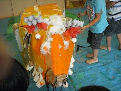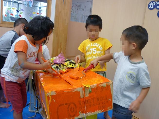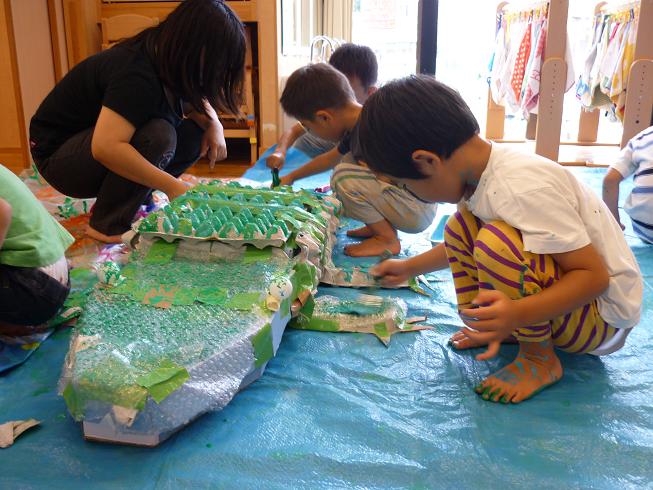 刷毛を片手に動物の周りをぐるぐる・・・皆で大きなものを作る楽しさを