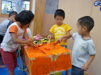 いつも机に座っての制作が苦手な子も今回は人一倍の元気爆発で