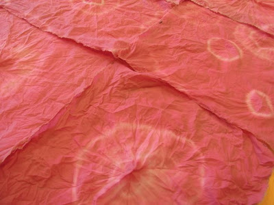 見せてもらいました。たまねぎ染めや藍染め、茜染めもありましたよ。