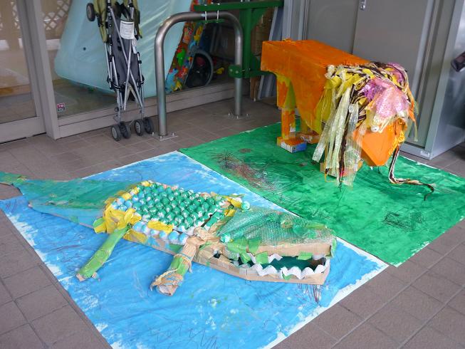 7月制作は6月に作ったライオンとワニに色を付けました。