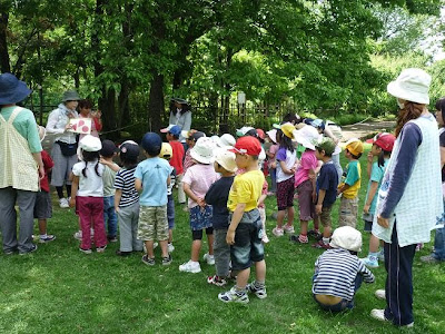 ハートの形の葉や細長い葉などみんなで発見して、久美せんせい