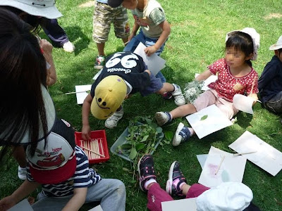沢山のいろんな形をした葉を使って、”葉のこすりだし”を