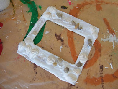 どっっぷりボンドの上に好きなように貝殻たちをのっけていきました。